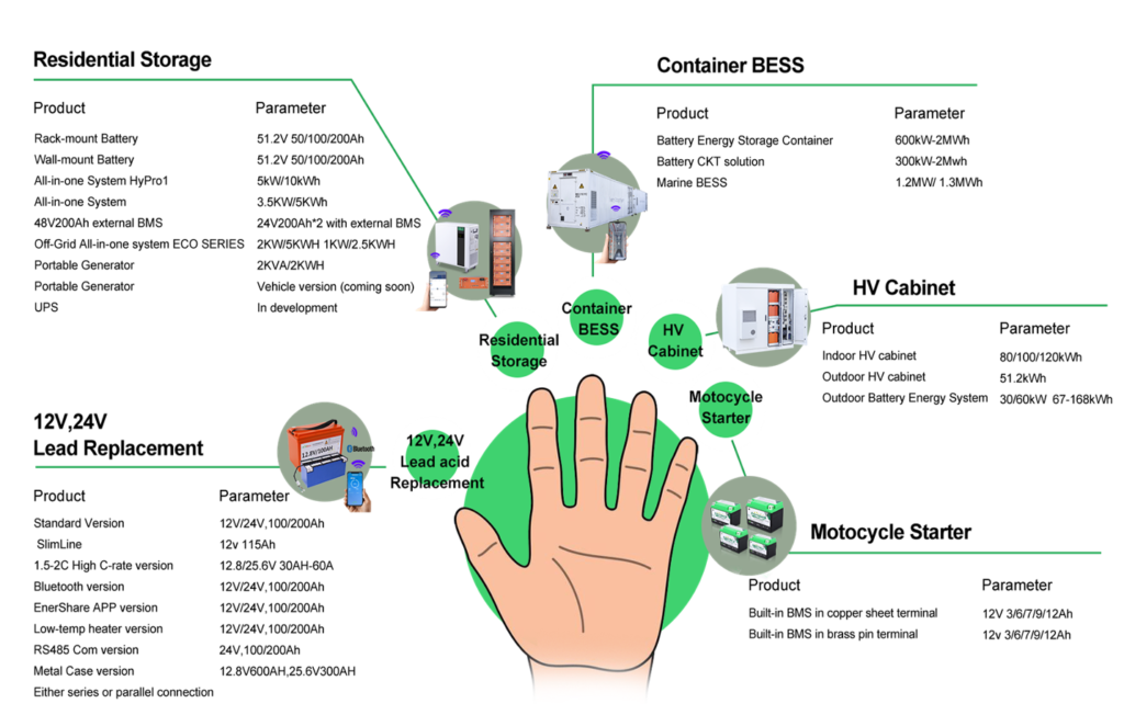 Residential storage, Container BESS, 12V - 24V Lead Replacement, HV Cabinet Motorcycle Starter.